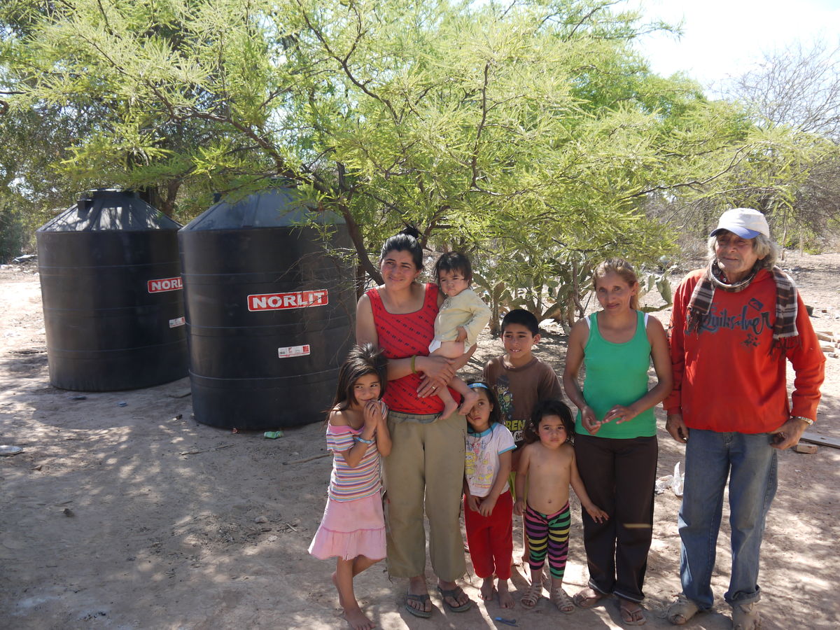 Die zwei Fahrzeuge mussten sich durch 40 bis 50 Zentimeter Sand kämpfen, die eine Wirkung wie Schlamm haben, in dem man stecken bleiben kann. Die Staubwolke des vorausfahrenden Fahrzeuges nahm zeitweise die Sicht für das nachfolgende Fahrzeug. Der erste Besuch galt der Familie Aldo Fabian Montenegro mit drei Kindern, die eine 8000-Liter-Zisterne erhalten haben. Gebaut wurde sie durch den Baumeister Olivera und durch Eigenarbeit der Familienmitglieder.